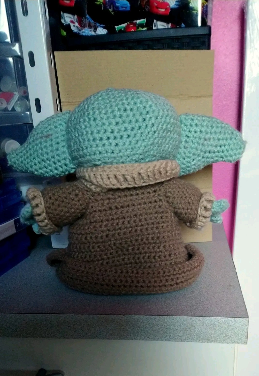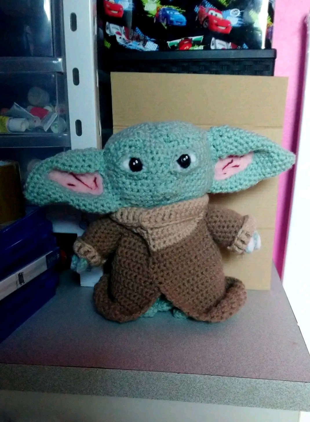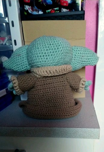 bebe yoda realisé au crochet.ses pieds ont été léstés.hauteur 22 cm